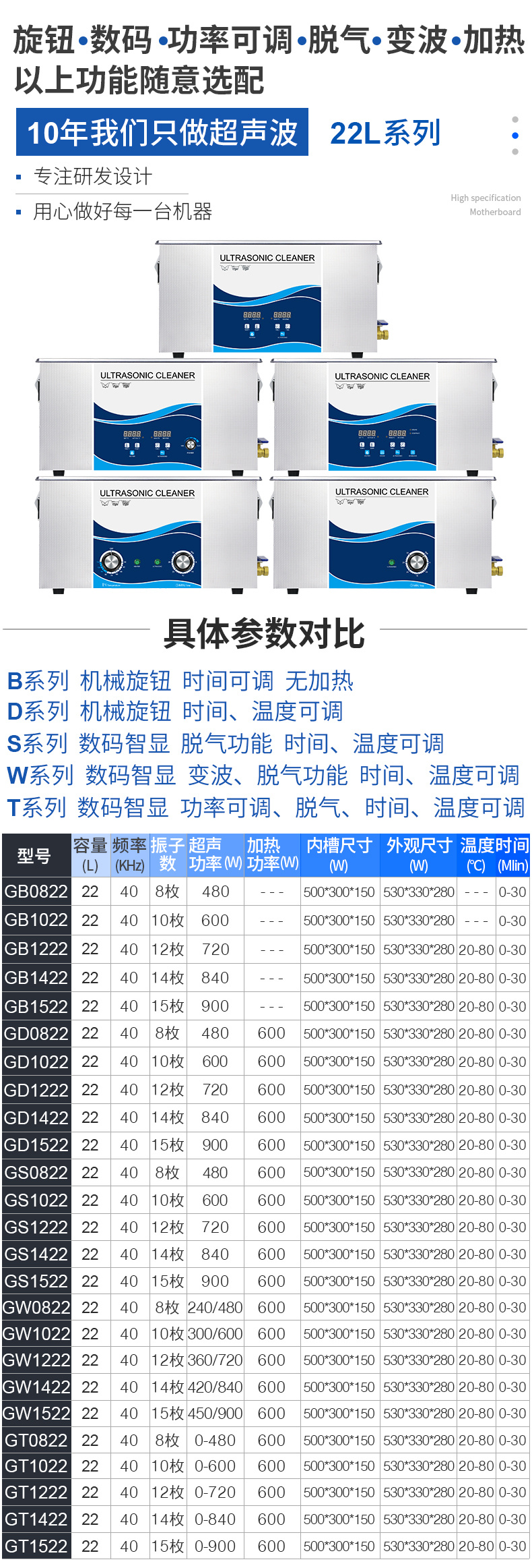 標簽: 家用 商用 機械旋鈕系列 定時功能 40KHz 600W 22L 上一篇: 下一篇: