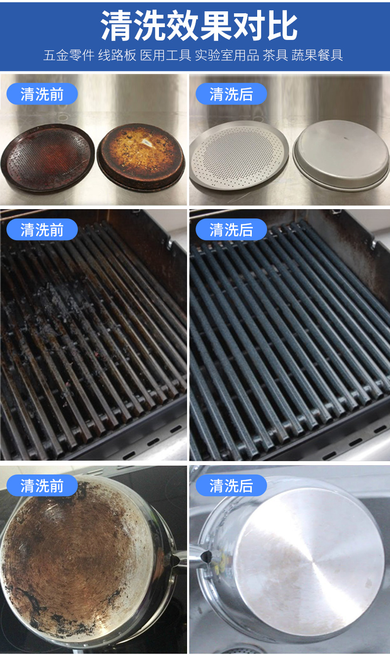 - 超聲波清洗機與清洗劑一起使用,清洗效果更佳!