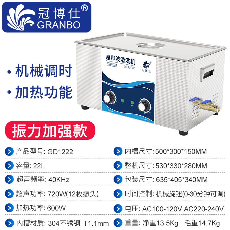 冠博仕GD1022超聲波清洗機|22L/600W|機械定時調溫