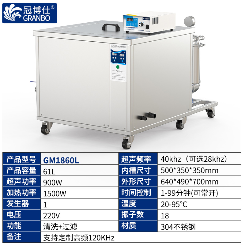 - GM系列臺(tái)式超聲波清洗機(jī)建議使用水溶性清洗劑,嚴(yán)禁使用強(qiáng)酸性或易燃性清洗劑。如需使用溶劑型清洗劑切勿加溫,并且工作約80分鐘后務(wù)必歌息一段時(shí)間后再啟動(dòng)工作。
