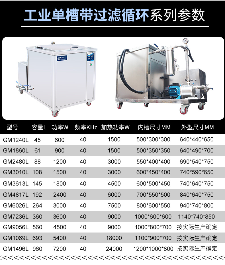 冠博仕超聲波清洗機 工業單槽機 后置過濾循環系統 45L-960L可選 支持定制