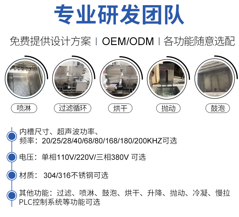 • 內槽尺寸、超聲波功率、頻率:20/25/28/40/68/80/168/180/200KHZ