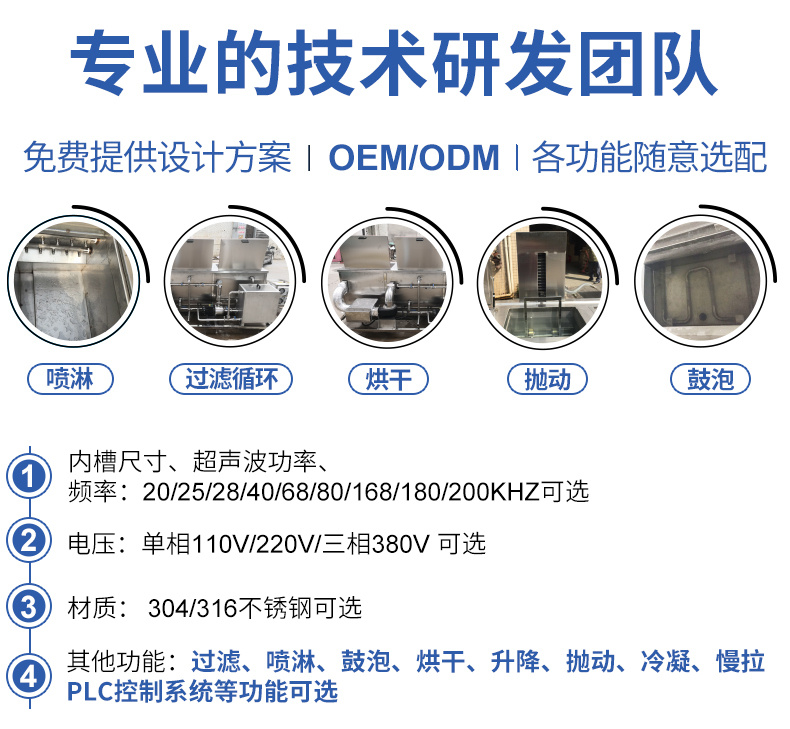 • 內(nèi)槽尺寸、超聲波功率、頻率:20/25/28/40/68/80/168/180/200KHZ