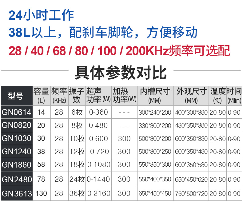 冠博仕GN3613超聲波清洗機|130L/2160W|工業一體機 功率可調 它激板