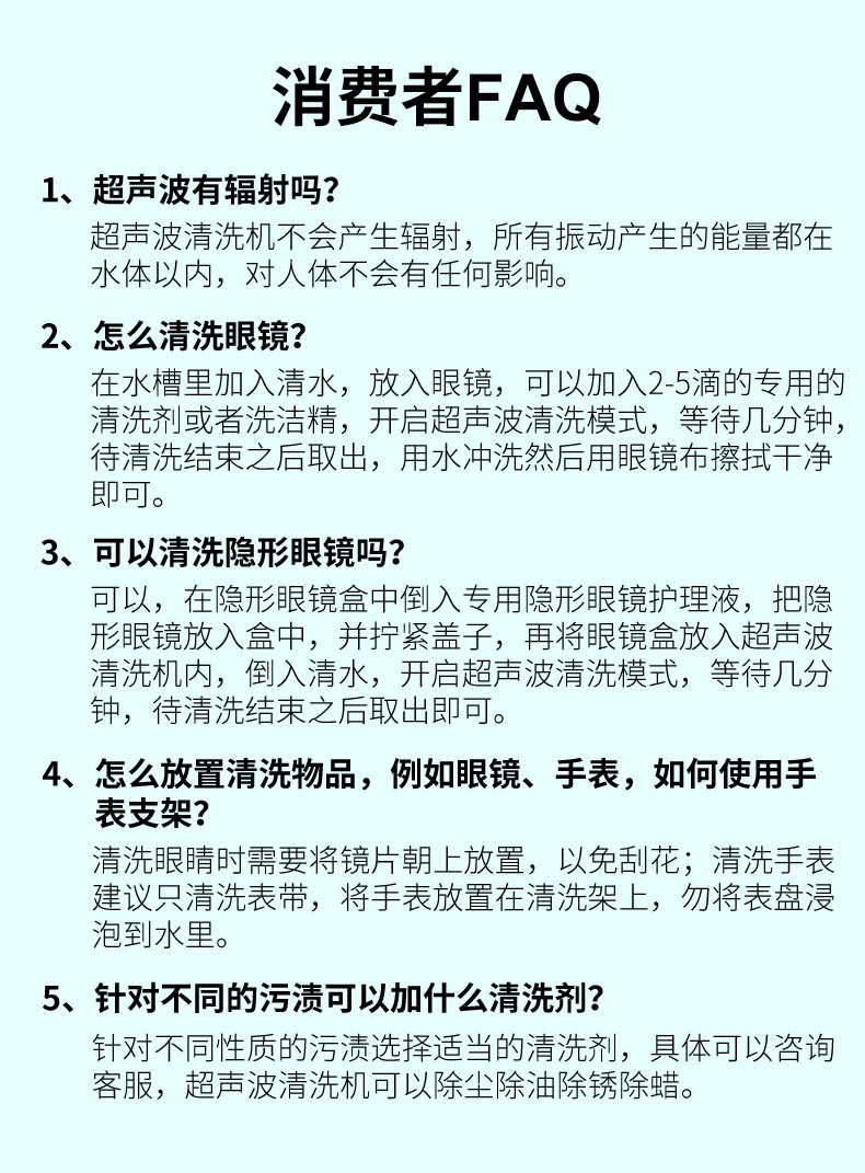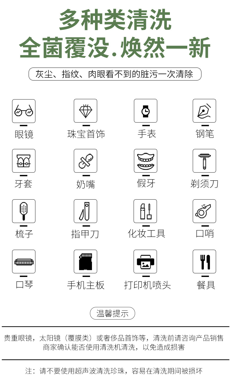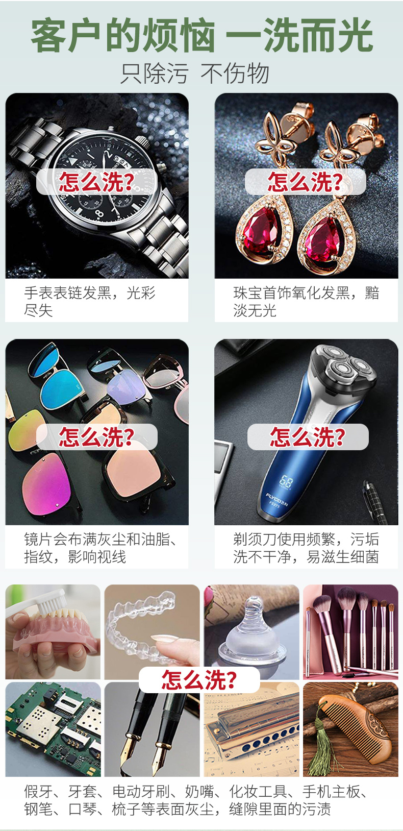 • 超聲波清洗機與清洗劑一起使用,清洗效果更佳!