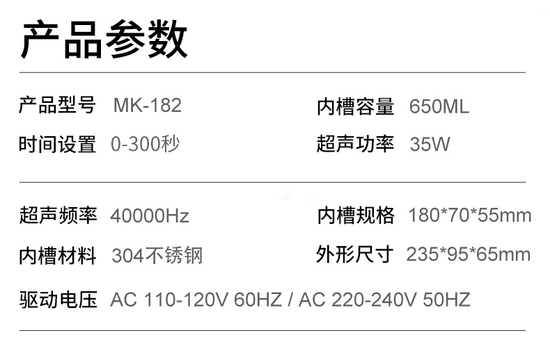 冠博仕MK-182超聲波清洗機|功率35W/650ML容量|家用商用塑膠機