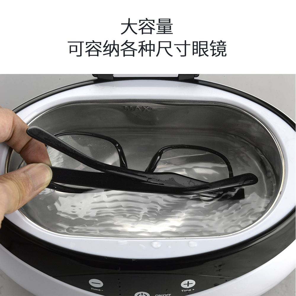 2.機器內槽加入清洗液,把裝有物品的清洗藍放入機器內槽(眼鏡清洗可無需放籃子上);
