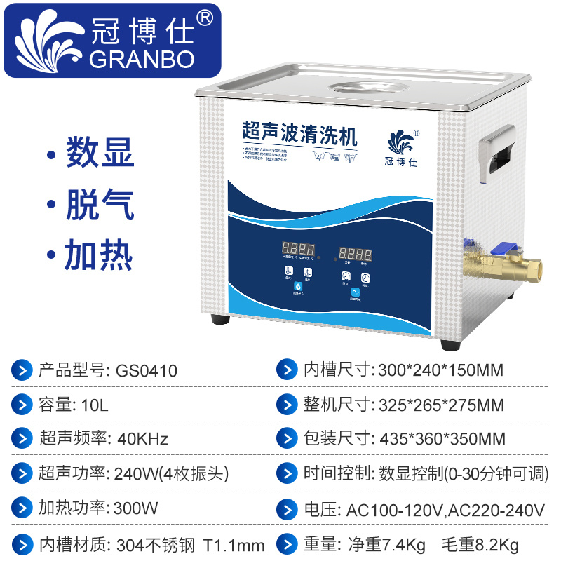 冠博仕GS0410超聲波清洗機(jī)|10L/240W|數(shù)顯定時(shí)調(diào)溫脫氣