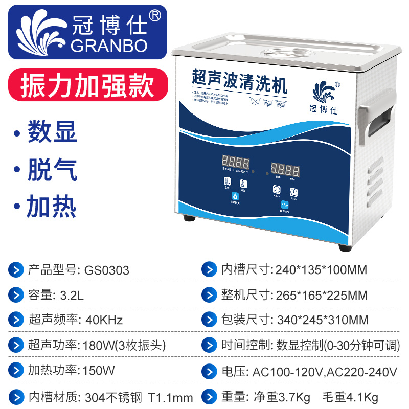 冠博仕GS0303超聲波清洗機|3.2L/180W|數顯定時調溫脫氣