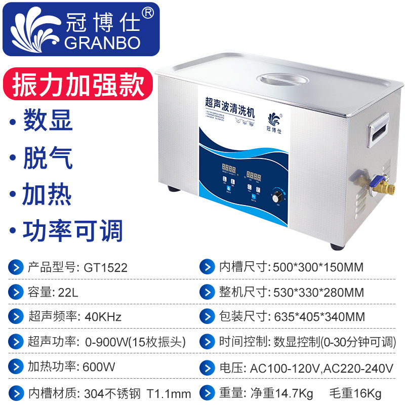 冠博仕GT1522超聲波清洗機|22L/900W|功率可調數碼定時帶加熱脫氣