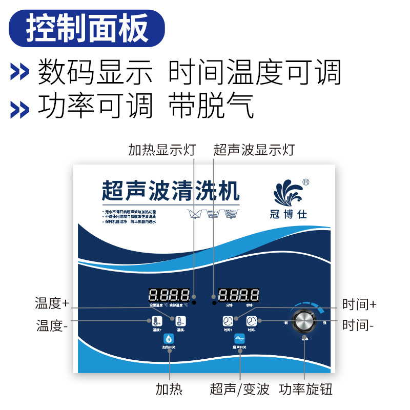 • 功率可調:機器超聲功率自由調節,適合更多物品清洗