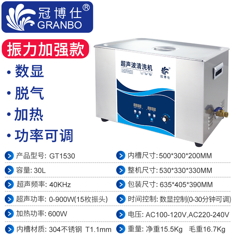 冠博仕GT1530超聲波清洗機|30L/900W|功率可調數碼脫氣帶加熱