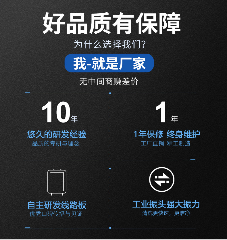 • 工業換能器: 采用工業震頭40KHz,力度強勁效果佳