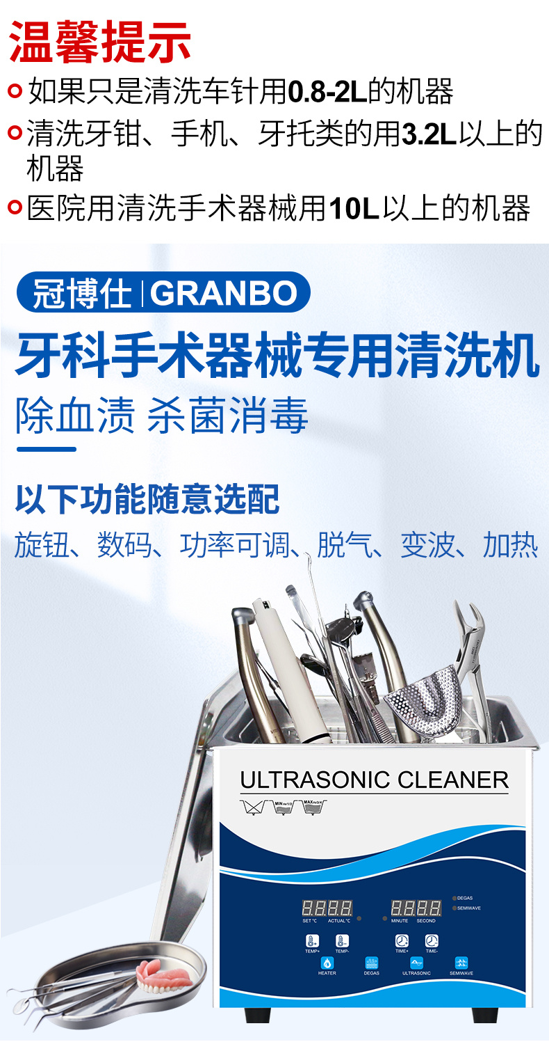 冠博仕GW0306牙科專用超聲波清洗機|6.5L/180W|數碼定時調溫變波