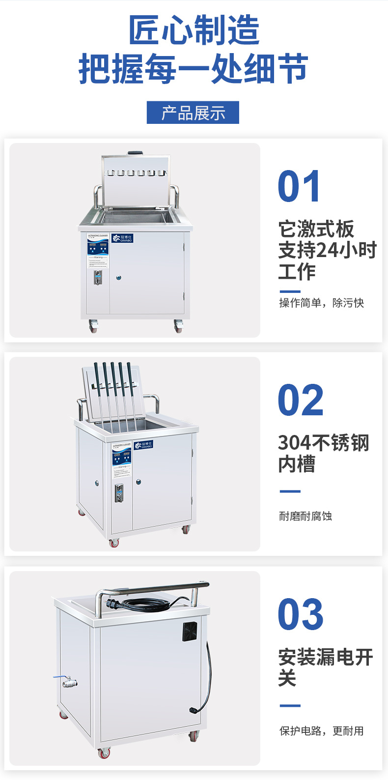 • 啟動加熱功能,清洗槽內液體不得低于清洗槽內槽高度的2/3;不開啟加熱功能,清洗槽內液體不得低于清洗植內精高段的1/2。